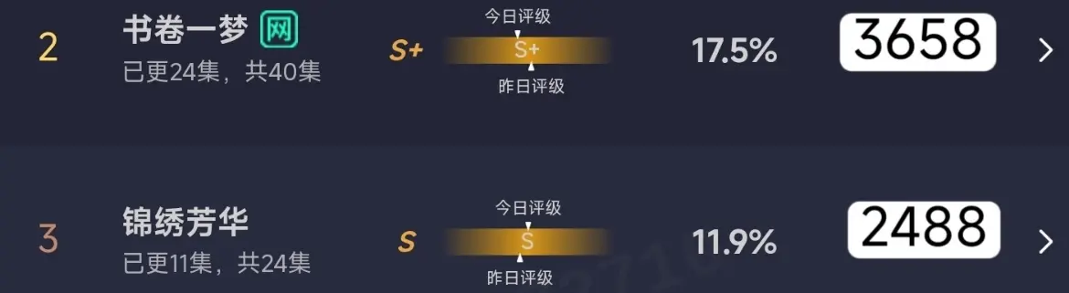 杨紫的《锦绣芳华》如期开播乐众盈,可相比起上一部《国色芳华》的巨大热度,这一部的走势则比较温吞,甚至比李一桐主演的《书卷一梦》都要低一头。